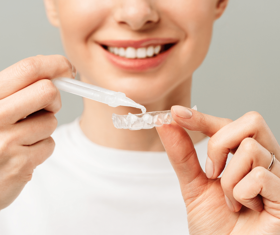 Professional whitening uses clinically approved gels to safely lighten the natural colour of your teeth, removing deeper stains that everyday brushing can’t reach.